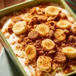 This recipe uses a quick stovetop pudding that thickens with corn starch, real vanilla, and a whipped cream topping. You layer plain vanilla wafers and ripe banana slices for a true old-school feel. It takes little time and uses common pantry items. You can make it the day before and let the flavors blend. I like to serve it chilled so it feels fresh and cool. If you want to try a warm twist, warm the pudding a bit before layering. For a sweet side or an easy swap, try serving this with banana bread or rolls like the ones in my other recipes at banana bread cinnamon rolls recipe. You will find this banana pudding easy to make, full of flavor, and perfect for any season or small celebration or big gathering.