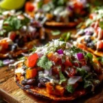 - Assemble the tostadas by layering the crispy tortillas with the seasoned black beans, roasted sweet potatoes, slices of avocado, and fresh cilantro.