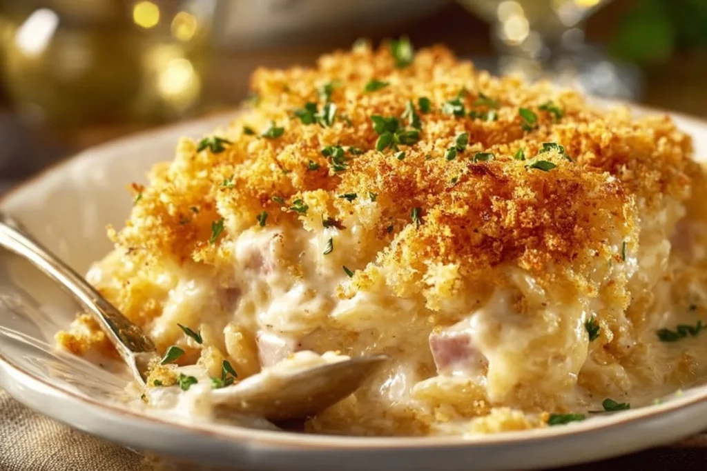Chicken Cordon Bleu Casserole is a delicious twist on a classic dish. It’s a comforting and filling meal that combines the flavors of chicken, ham, and Swiss cheese in a creamy sauce. This casserole is perfect for weeknight dinners and is easy to prepare. Plus, it can feed a crowd, making it great for gatherings or family meals.