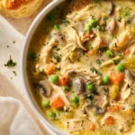 This Chicken Pot Pie Soup is creamy and filling. It tastes like the classic pot pie but in a bowl. If you like slow-cooker versions, try a crockpot chicken pot pie for an easy, hands-off meal.