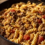 You brown the beef, add the Rotel and spices, pour in cream, then toss with cooked pasta and cheese. Work in this order so the sauce stays smooth and the cheese melts evenly. Keep heat medium to low after adding cream to avoid breaking the sauce. For a similar baked twist, check this cajun cream cheese chicken pasta bake for inspiration.