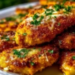 This chicken is crispy, cheesy, and simple. It cooks in the oven, so you do not need to fry. The crust has Italian flavors and Parmesan for a nice taste. If you like a crunchy top and tender meat, this is a good choice. For a similar simple baked chicken idea, see this crispy garlic parmesan cutlets recipe.