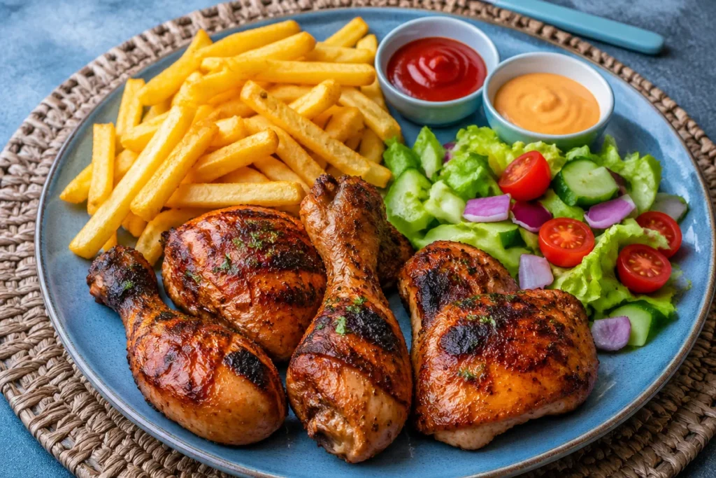 What Makes Juicy Grilled Chicken Drumsticks with Fries & Fresh Salad Special