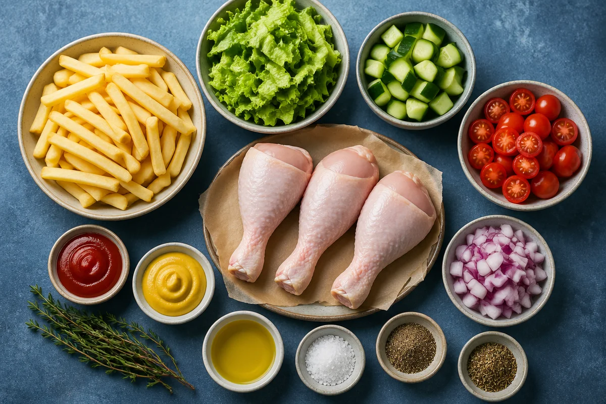 To choose the best quality ingredients, look for drumsticks that are plump and free of blemishes. Fresh herbs add vibrant flavor, while crispy fries are key for texture. For substitutions, use baked sweet potato fries for a healthier option, or swap out the chicken for marinated tofu for a vegan alternative.
