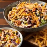 Frito Cowboy Cabbage is a bright, crunchy salad that brings bold Tex-Mex flavors to a quick weeknight meal or a potluck table. This dish blends crisp coleslaw mix with sweet corn, creamy black beans, and crunchy Chili Cheese Fritos. A smoky chipotle-lime dressing coats the salad and adds warmth and tang. The fresh cilantro, green onions, jalapeño, and red bell pepper give color, aroma, and spice, while sour cream and mayonnaise make the dressing smooth and rich. When you mix it, you will smell toasted corn and a soft smoky heat from the chipotle. The texture is a main reason to love it: every bite has crisp cabbage, soft beans, and a salty, crunchy pop from the Fritos. People first made similar cowboy slaws in the Southwest to use pantry staples and feed a crowd. This version keeps that homely spirit but adds a modern kick with adobo chipotle and a mix of fresh produce. It works as a side dish for grilled meat, a topping for tacos, or the star of a picnic spread. It is easy to scale up or down and stays vibrant if you toss the chips in at the last minute. If you like other cabbage recipes, try easy cabbage rolls for a warm option. It also pairs well with simple grilled chicken or beans. This salad feels fresh and homey. It makes mouths water and brings people together around the table for simple, bright food. Keep the chips crunchy for best results always.