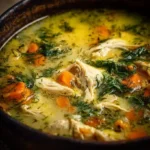 Greek Lemon Chicken Soup (avgolemono) is a clear chicken broth with lemon and eggs that makes the soup creamy without cream. The lemon gives a fresh taste and the eggs give a silky texture. If you like simple brothy soups, try this simple chicken vegetable soup for another easy option.