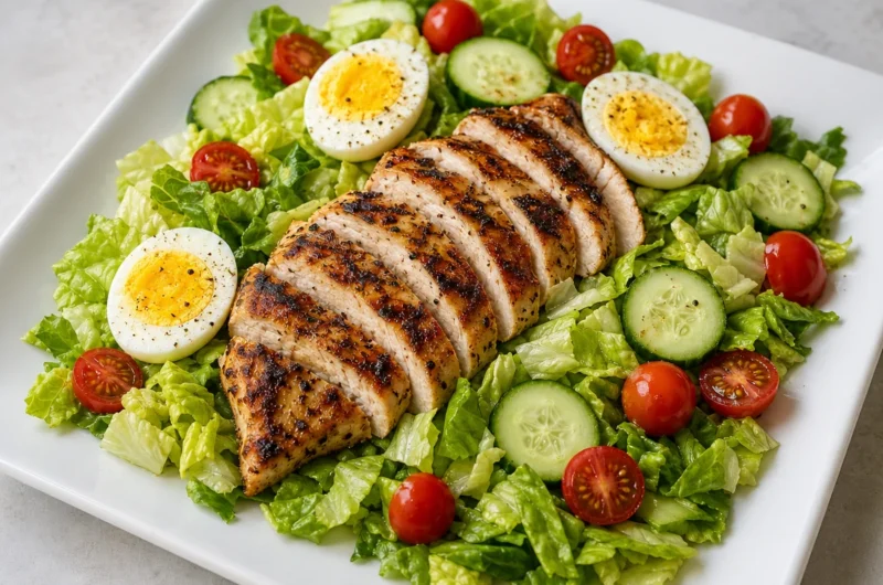 - Assemble the Salad: Layer your greens, sliced chicken, and boiled eggs in a bowl to create a balanced protein meal.
