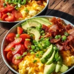 This bowl gives you a big boost of protein to start the day. You get eggs, bacon, Greek yogurt, and avocado in one bowl. It fills you up and keeps energy steady. For more easy breakfast ideas, check out this list of simple breakfast recipes.