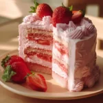 A soft and sweet cake bursting with fresh strawberry flavor, perfect for any occasion.