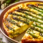 This crustless asparagus quiche smells like spring. The oven gives a warm, eggy smell with fresh green notes from asparagus and sweet, browned cheese on top. The first bite feels soft and creamy. The asparagus gives small bites of snap. The top is slightly browned and light. The inside stays smooth, not dry. This dish feels like a light, warm hug on a plate.