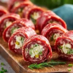 When you open a plate of these roll-ups, the smell is rich and savory. You catch the warm scent of cured meat, a little sharpness from the cheese, and a tiny pop of herb or spice. When you bite into one, the first feel is the thin, slightly chewy salami. Then you hit the soft, creamy filling. The contrast of textures — firm meat and soft cheese — makes each bite interesting. The taste is bold: salty salami, tangy cream cheese, mild cheddar, and whatever herbs or peppers you add for heat.