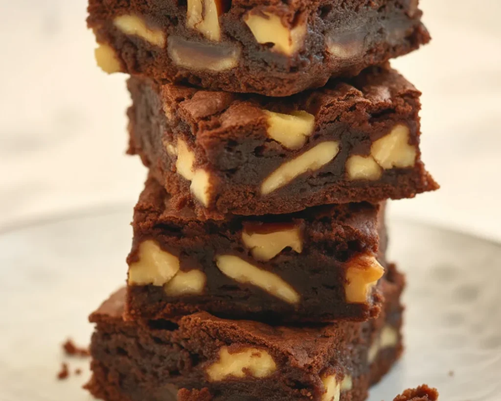 When the brownies are done, cool them in the pan. Cutting too early can squash the top and make it tear. A warm knife helps slice cleanly without dragging.