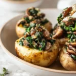 This oven-roasted potato dish gives a warm, satisfying meal with crisp edges, deep mushroom flavor, and soft spinach. It is simple to make, easy to scale, and fits many diets. For more inspiration with mushrooms and potatoes, check out this stuffed baked potato recipe on Two Spoons: The Ultimate Stuffed Baked Potatoes with Mushrooms – Two Spoons. To explore more from the same creative kitchen, visit Two Spoons.