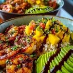Shrimp and Avocado Bowls with Mango Salsa & Lime-Chili Sauce is a simple yet delicious meal that brings a burst of flavor with every bite. It combines the freshness of shrimp, creamy avocado, and fruity mango, making it a perfect choice for a healthy lunch or dinner. This dish is not only tasty but also quick to prepare, making it great for busy days when you still want something special.