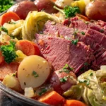 The dish has roots in Irish cooking and American convenience. Corned beef became popular among Irish immigrants in the United States. Families adapted it into homes and holiday meals. Aromas of mustard seeds, peppercorns, and garlic fill the house. Textures range from shred-able brisket to crisp-tender vegetables. People love it for its nostalgia and ease. It feeds a crowd, reheats well, and tastes better on day two.