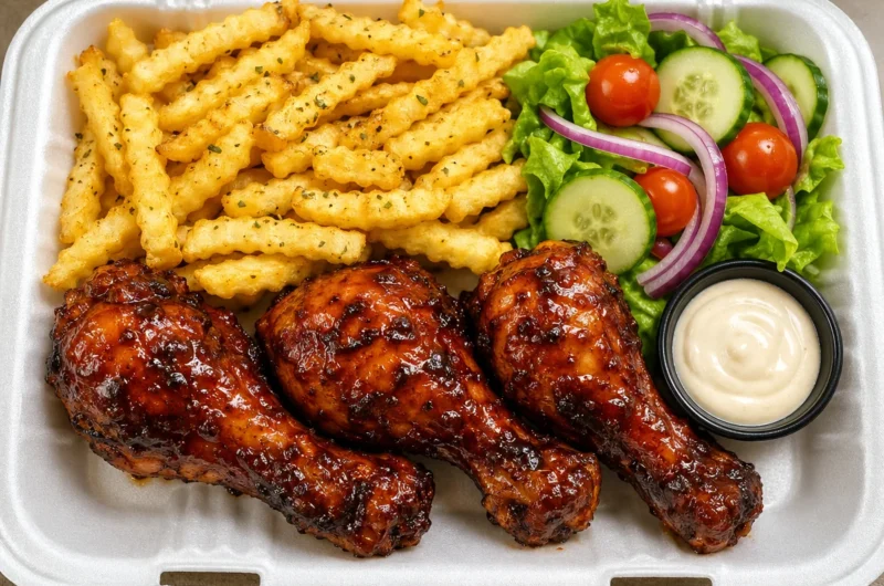 Sticky Glazed Chicken & Fries Power Box is a delightful, easy-to-make dish perfect for family dinners or meal preps. This recipe combines juicy chicken drumsticks with crispy fries and a fresh salad, all coated with a tangy glaze. It’s a well-balanced meal that satisfies your hunger and gives you the nutrition you need. Plus, it’s a fun way to mix and match flavors, making it a hit with both kids and adults.